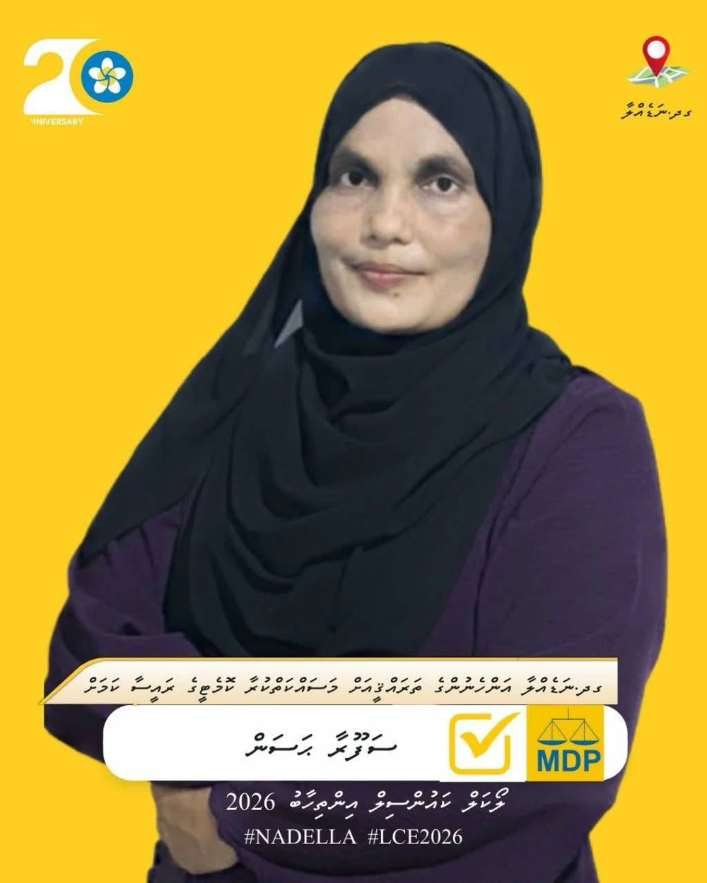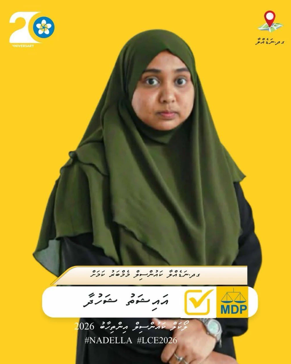 މި ހިނގާ އޭޕްރީލް މަހުގެ 4 ވަނަ ދުވަހު ބޭއްވުނު ލޯކަލް ކައުންސިލް އިންތިޚާބުގައި، ވޭތުވެދިޔަ 18 އަހަރު ތެރޭ ފުރަތަމަ ފަހަރަށް ގދ. ނަޑެއްލާ ކައުންސިލްގެ އަންހެނުންގެ ތަރައްގީއަށް މަސައްކަތް ކުރާ ކޮމެޓީގެ ރައީސާގެ މަގާމު އިދިކޮޅު އެމްޑީޕީގެ ކެންޑިޑޭޓް ޝަފޫރާ ހަސަން ކާމިޔާބު ކުރައްވައިފިއެވެ.